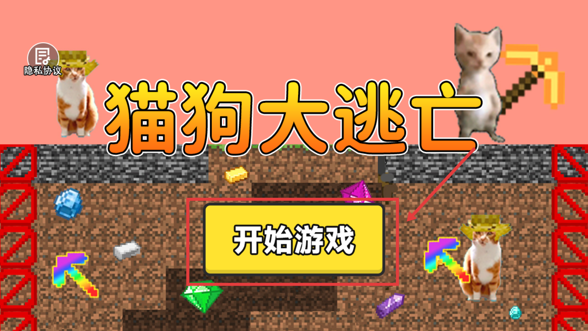 1、點擊【開始游戲】進入貓狗大逃亡,操控萌系哈基米礦工,開啟挖礦探索積累初始礦物資源。