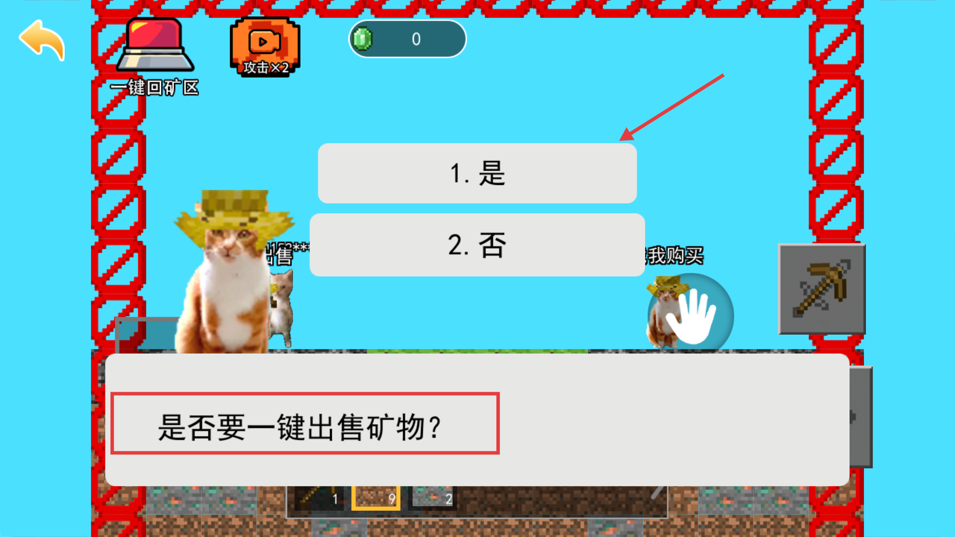 4、積累礦物后選擇【1是】確認一鍵出售,快速獲取資源用于升級角色或建造設施。