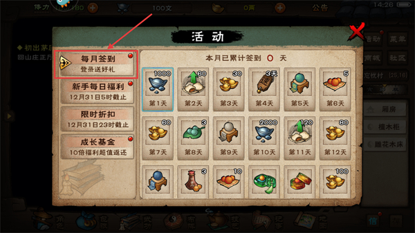 1、參與【每月簽到】活動登錄送好禮,累計簽到天數(shù)可領取【1000】文銀-【60】體力等多樣獎勵提升游戲體驗。