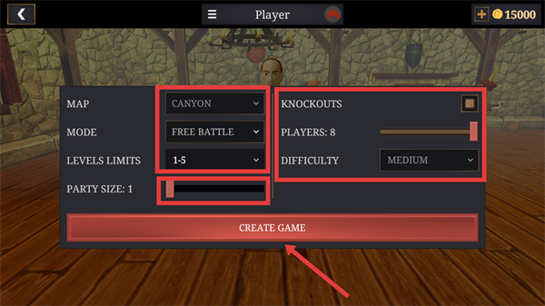 1、先將地圖設為【CANYON】,模式選擇為【FREE-BATTLE】等,確認后點擊【CREATE-GAME】按鈕。