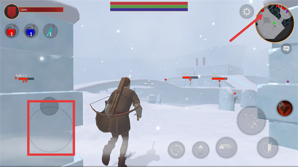 2、利用左側控制區域操控角色移動,通過右上角【小地圖】查看【敵人】的位置分布,提前規劃行進路線。