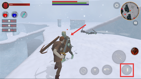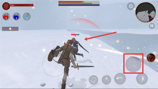 3、近距離靠近敵人時,點擊右側攻擊按鍵,以劍攻擊,爭取將敵人擊敗。