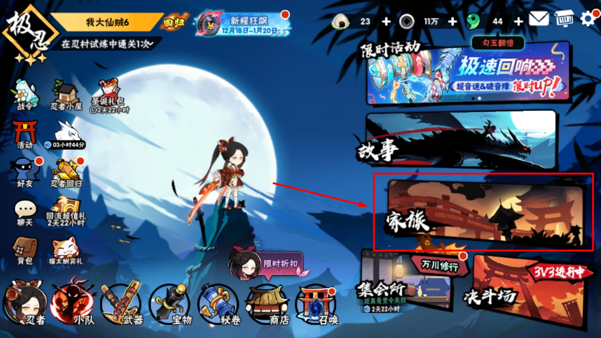 1、主界面右側有【家族】入口,點擊即可進入家族相關功能頁面,開啟家族玩法的第一步。