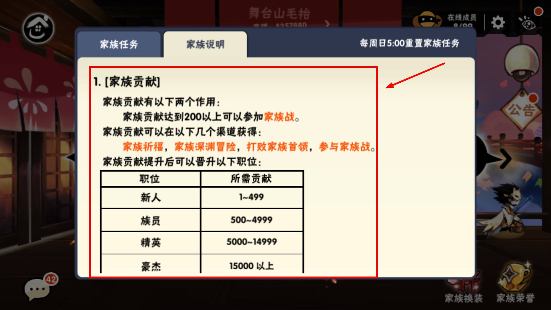 3、家族貢獻達【200】以上可參加【家族戰】,可通過【家族祈?!?【深淵冒險】等渠道獲取,提升還能晉升職位。