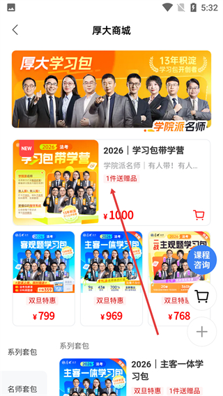 3、在學習包頁面,選擇【2026|學習包帶學營】產品。