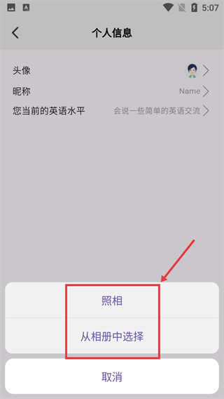 4、選擇對應的頭像獲取方式(如“從相冊中選擇”),完成頭像的更換操作。