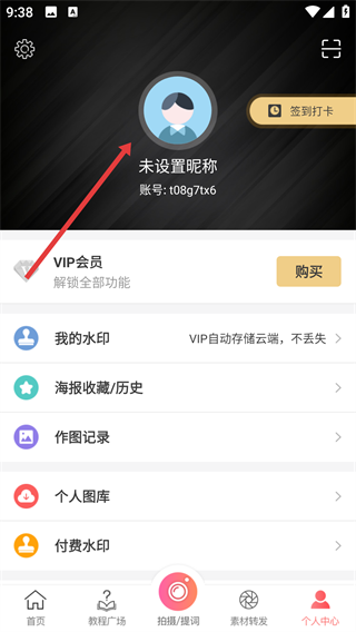 1、進入微脈水印相機的個人中心,點擊【頭像】區域哦。