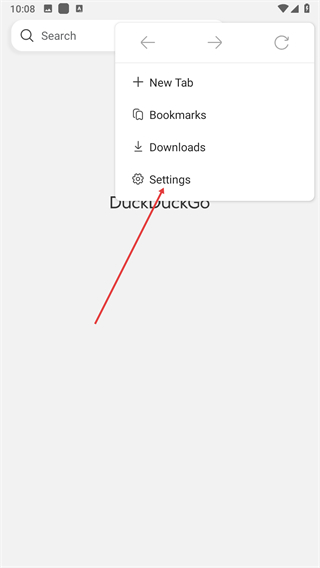 1、打開(kāi)duckduckgo瀏覽器主界面,點(diǎn)擊右上角三點(diǎn)圖標(biāo)展開(kāi)功能菜單選項(xiàng)。