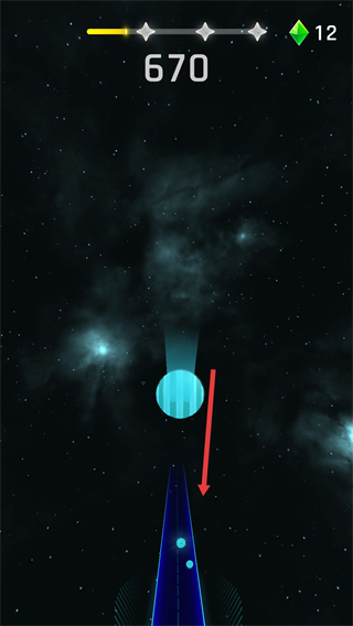 3.只需要輕輕點動手指,控制手中的球球隨著音樂的節奏,躲避障礙順利前行。