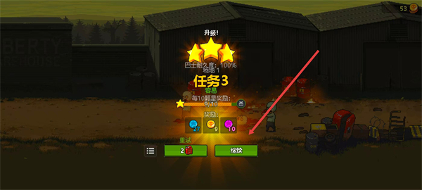 4、完成僵尸清剿,即可獲得獎勵點擊繼續進入下一關。