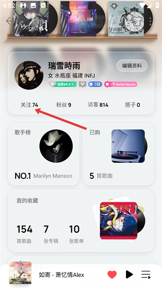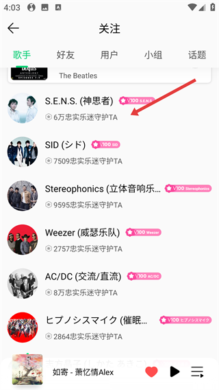 2、在關注頁的歌手分類下,選擇要取消關注的歌手進入其主頁吧。