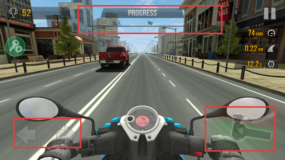2、操作設計運用重力感應控制方式,設備傾斜控制摩托車轉向,加速剎車按鍵布局合理,響應迅速反饋及時,入門快速易于掌握。