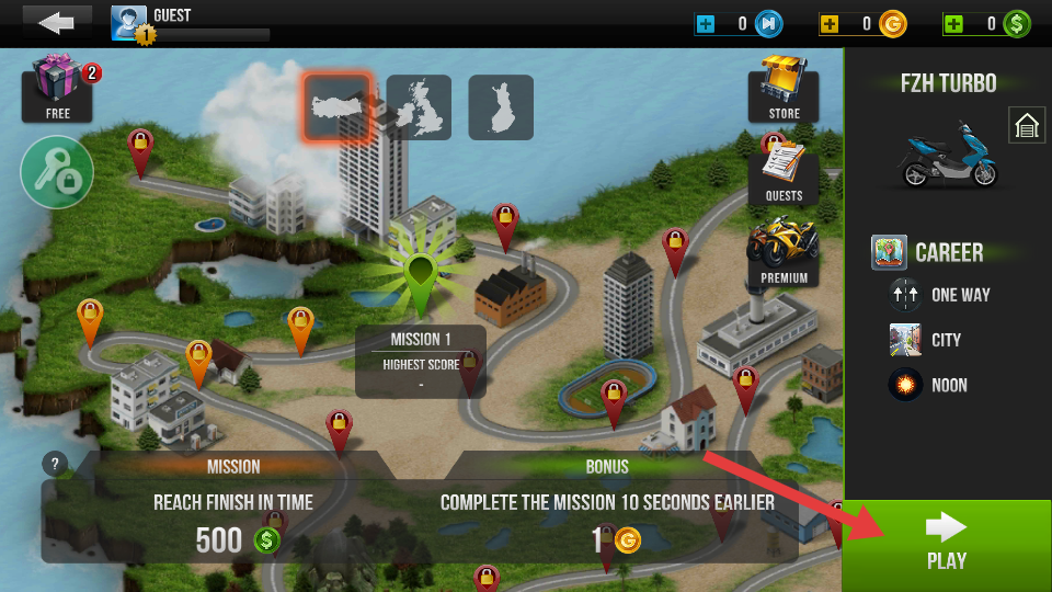 1、點擊【PLAY】,開始摩托車駕駛任務,開啟城市道路的競速挑戰。