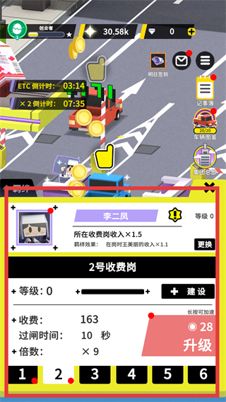 1、內(nèi)置菜單讓經(jīng)營更順暢,不用糾結(jié)資源不夠,能快速升級設(shè)施,專注打造人氣收費站,省去繁瑣的積累過程。