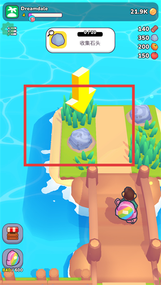 4、通過建好的橋梁前往新區域,找到石頭資源點收集20個石頭。