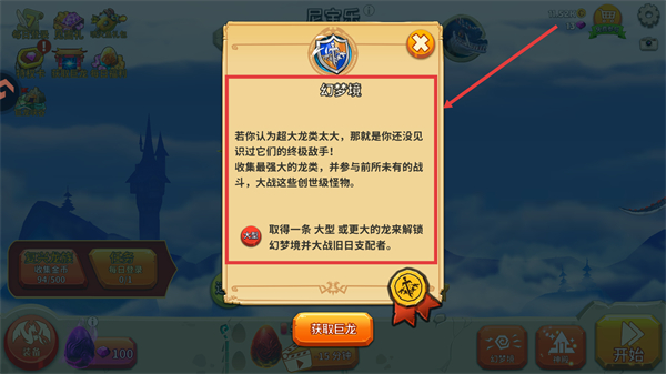 2、先獲取【大型】或更大的龍類解鎖【幻夢境】,參與全新戰(zhàn)斗,對抗創(chuàng)世紀級怪物,體驗終極挑戰(zhàn)樂趣。