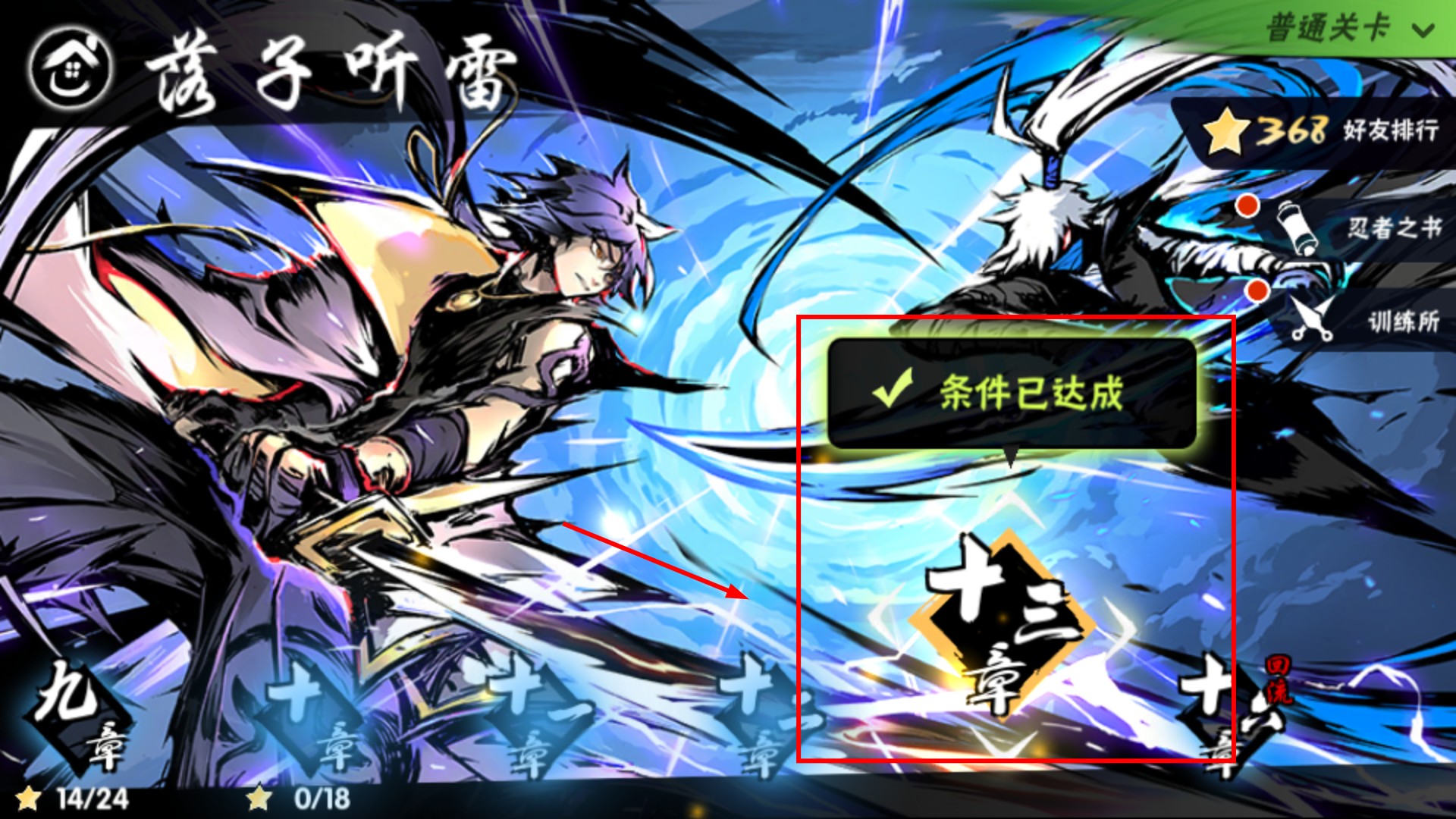 1、進入【游子聽雷】章節(jié)選擇界面,優(yōu)先選擇條件已達成的【十三章】,快速推進主線劇情解鎖新內(nèi)容。