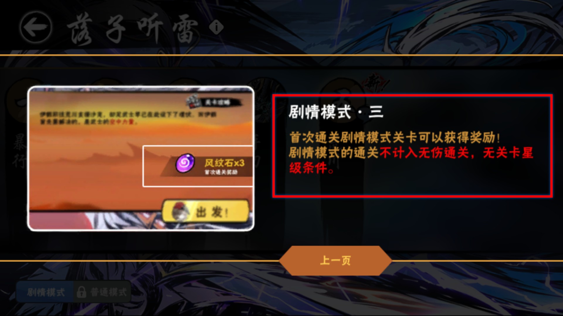 3、首次通關【劇情模式】關卡可獲得【風紋石x3】等獎勵,通關不計入無傷統(tǒng)計也無星級要求。