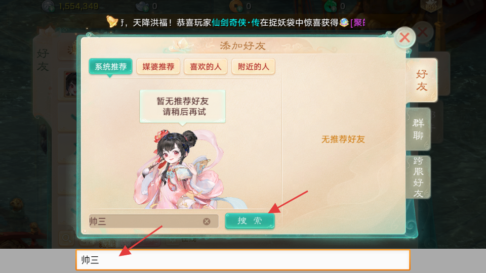 3、在輸入框中輸入好友名稱,點擊【搜索】。