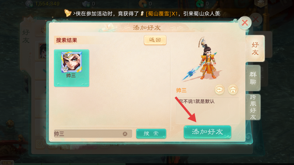 4、搜索到目標后,點擊【添加好友】,完成好友添加操作。