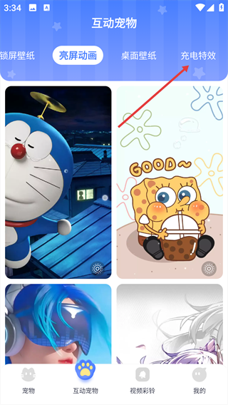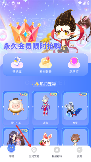 1、打開app,點擊下方【互動寵物】。