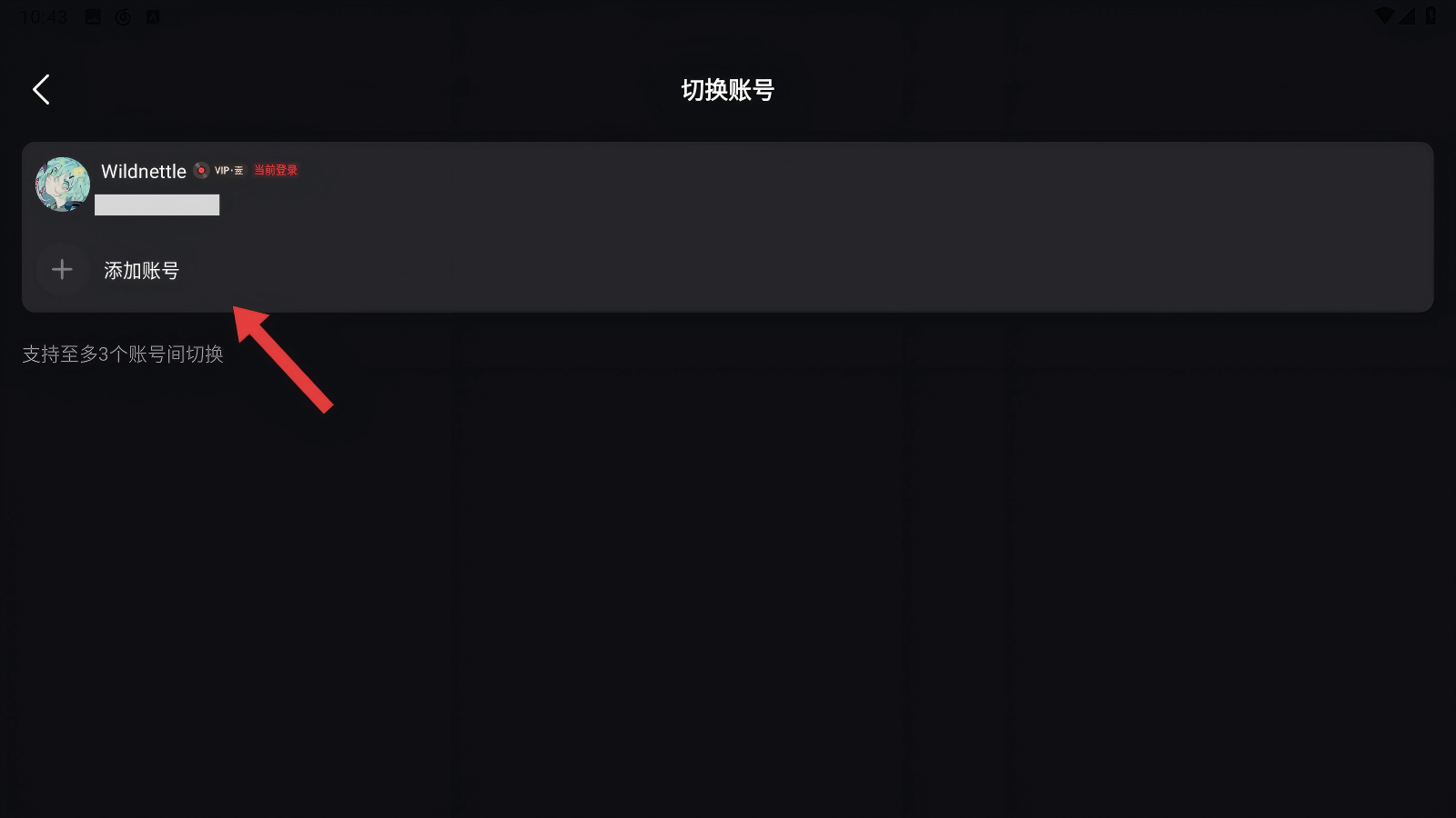 3、進入切換賬號頁面后,我們點擊【添加賬號】,就能開始添加新的賬號啦。