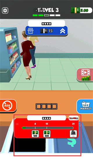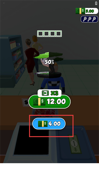 3、成功完成收銀交易后,會出現(xiàn)慶祝特效,此時可獲得對應的獎勵,提升游戲進度和收益。