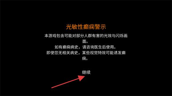 1、在【光敏性癲癇警示】界面,點擊【繼續】按鈕,進入游戲的主交互場景。