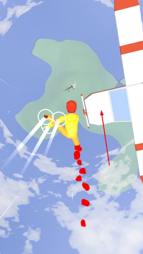 2、引導角色安全向地面降落,例如不要碰到旁邊的飛機。