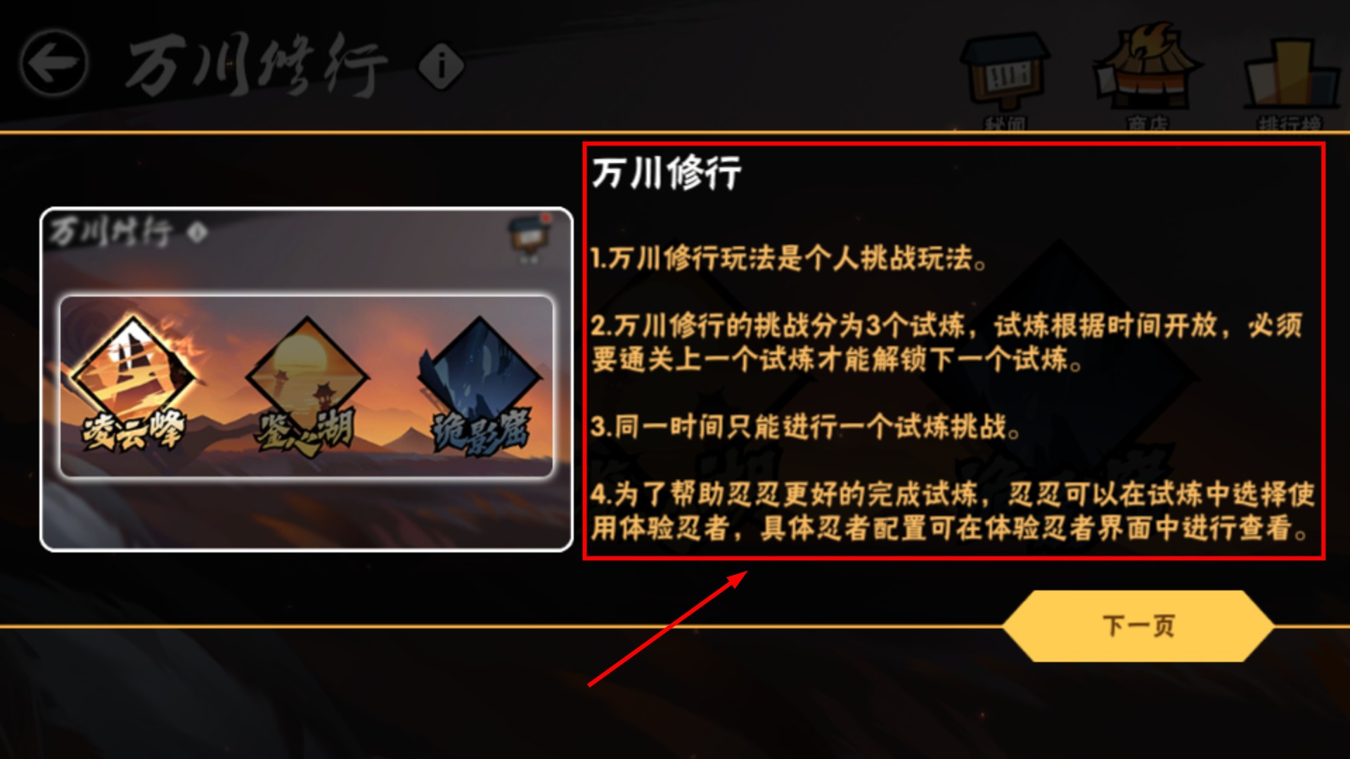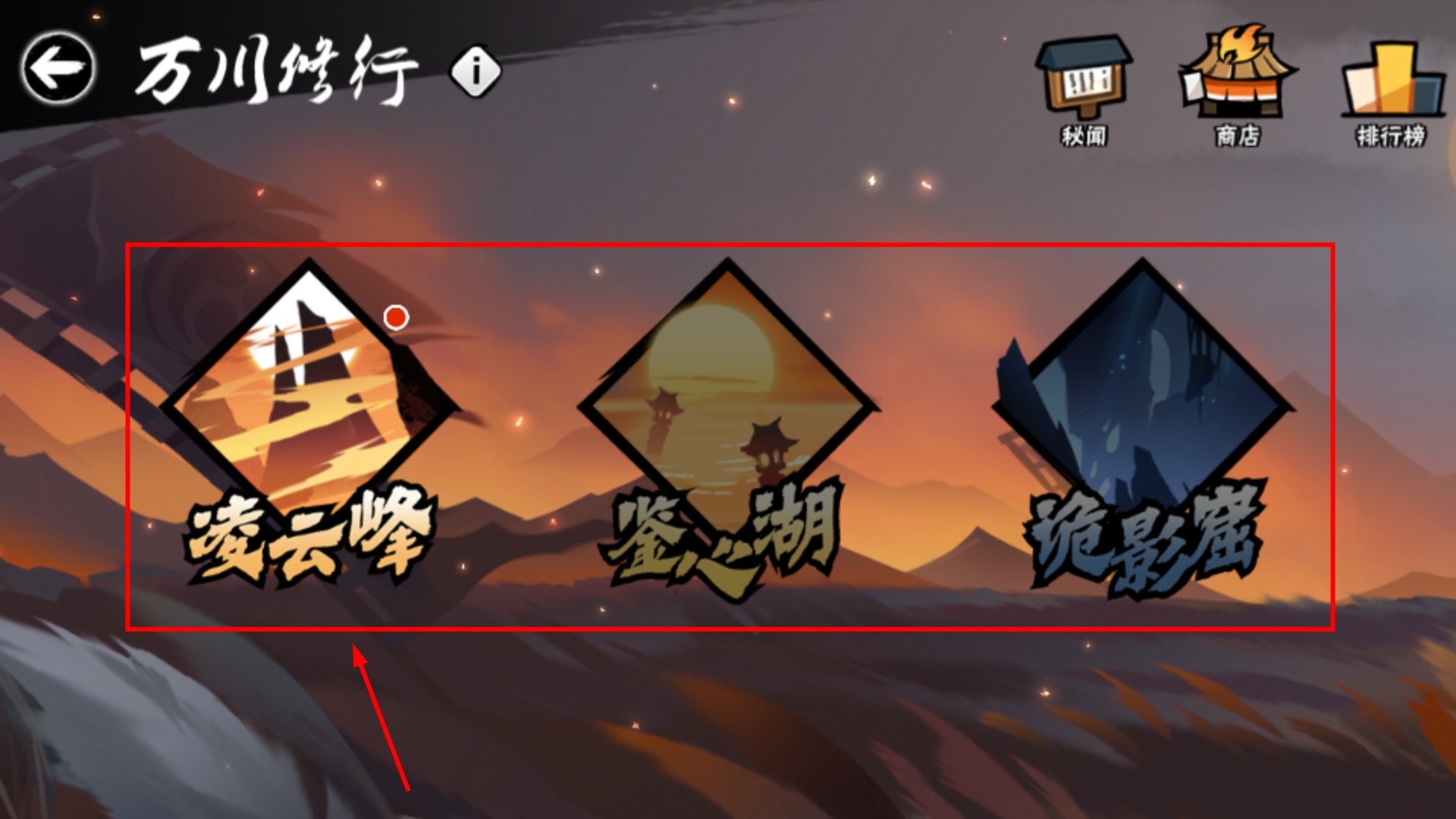 2、【萬川修行】是個人挑戰玩法,分【凌云峰】-【鑒心湖】-【詭影窟】三試煉,需按順序解鎖。