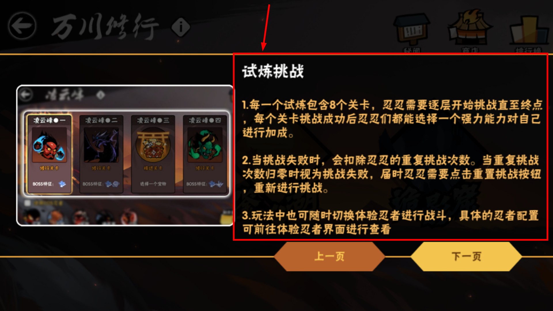 3、每個試煉有8個關卡,逐層挑戰能選能力加成,失敗扣次數,次數歸零要重置再挑戰。