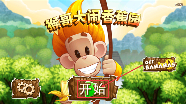 1、進(jìn)入【猴哥大鬧香蕉園】游戲,點(diǎn)擊界面中的【開(kāi)始】按鈕,即可開(kāi)啟收集香蕉的冒險(xiǎn),對(duì)應(yīng)【GET-BANANAS】核心玩法。