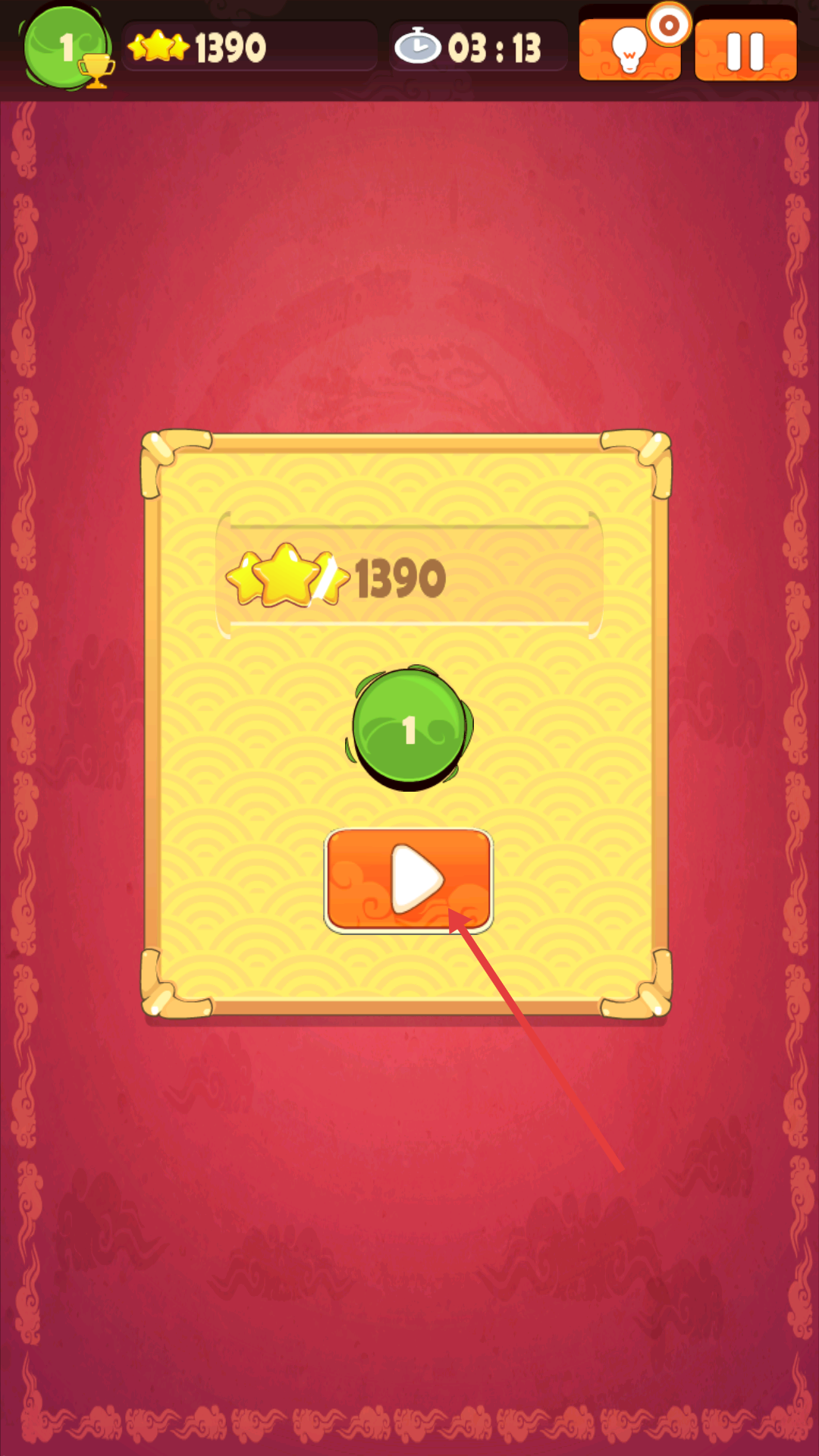 4、完成當(dāng)前關(guān)卡的麻將消除后,點(diǎn)擊橙色播放按鈕,繼續(xù)挑戰(zhàn)下一關(guān)。