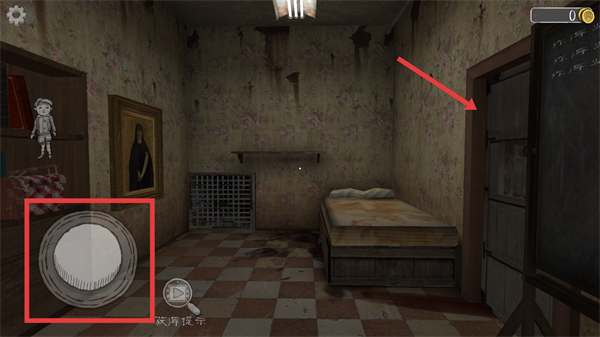 2、初始場景為房間,通過左側(cè)虛擬搖桿控制角色移動(dòng),優(yōu)先靠近門的位置,探索場景中的可交互物品(如架子、床)獲取線索。
