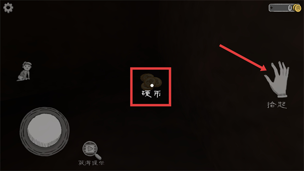 4、探索過程中會(huì)遇到“硬幣”類物品,點(diǎn)擊“拾起”收集,這類物品可能是解謎的關(guān)鍵道具,或用于解鎖特定機(jī)關(guān)。