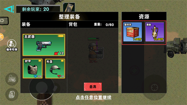 1、戰場中遇到寶箱要及時開啟,獲取物資強化自身,同時關注【剩余玩家20】和【撤離卡】的狀態,做好撤離準備。