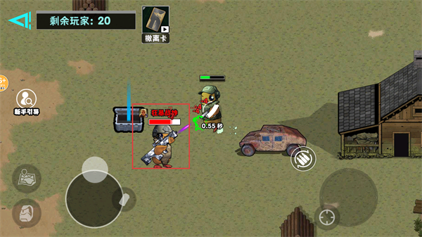 1、操控角色穿梭戰場搜刮寶箱與武器,根據實時戰況選擇掩體埋伏或迂回突襲,每一步決策都影響生存概率。