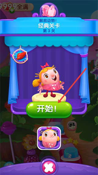 1、點擊【開始!】按鈕,進入經典關卡第3關的糖果消除任務。