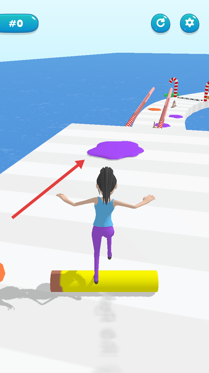 1、操控角色在賽道上前進,收集紫色顏料,為后續染色操作做準備。