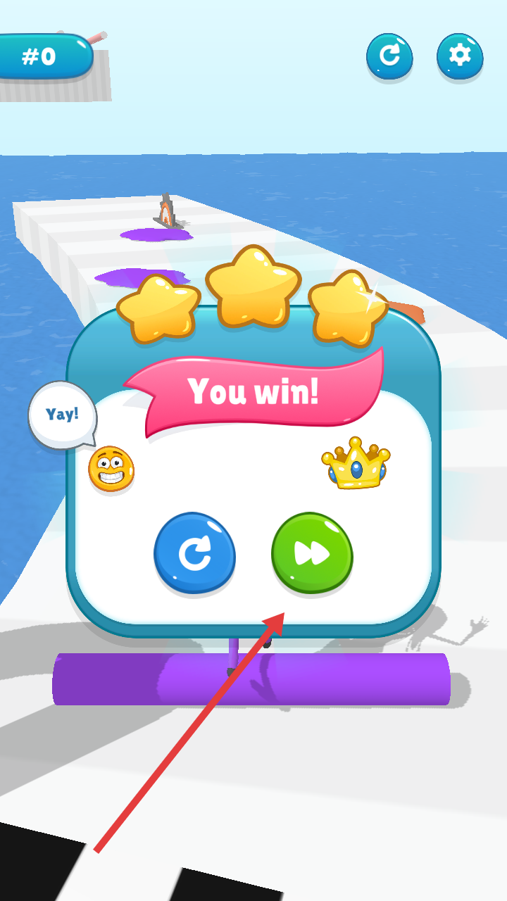 4、關卡完成后,點擊綠色按鈕進入下一關,繼續挑戰更多賽道關卡,解鎖新的游戲內容。