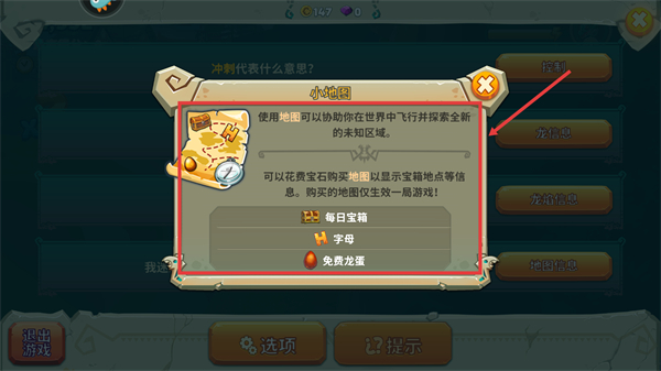 3、使用【小地圖】能協助探索未知區域,花費寶石購買地圖可顯示寶箱位置,每日還有【免費龍蛋】等獎勵。