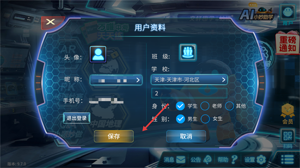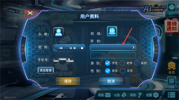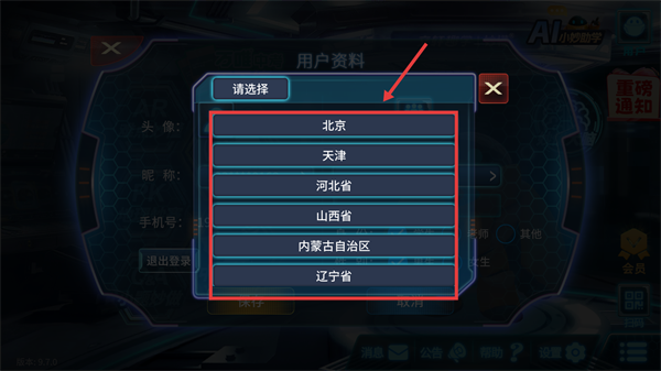 2、在用戶資料頁面,找到【學校】選項欄并點擊,彈出地區選擇列表。