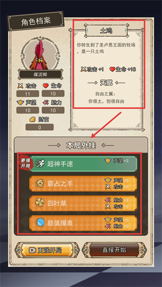 2、確認轉生角色屬性與本局外掛搭配,土雞適配【超越手速】-【霸占之手】,合適后點擊直接開始進入游戲。