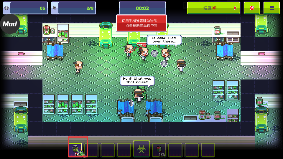 4、使用輔助物品,點擊選中它,提升感染效果,推進游戲。