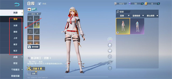 2、在倉(cāng)庫(kù)外觀界面,可選擇【套裝】【頭部】【面妝】等分類。