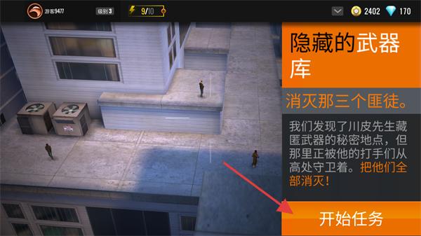 1、面對【消滅穿紅色夾克的人】的任務,點擊【開始任務】按鈕即可進入狙擊場景執行任務。