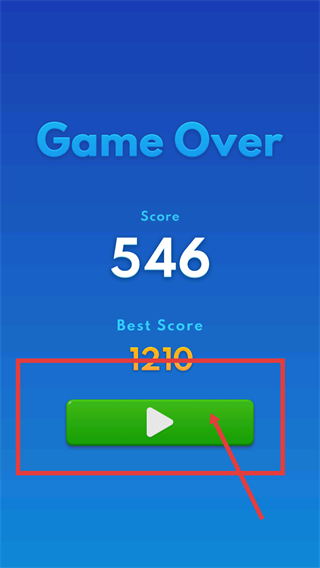 4、游戲結束后,點擊界面中的【綠色按鈕】重新開始,總結上局經驗,爭取突破記錄。