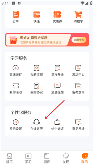 1、在“我的”頁面,點擊個性化服務區域的“在線客服”選項。