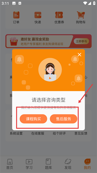 2、在彈出的彈窗中選擇對應的咨詢類型。