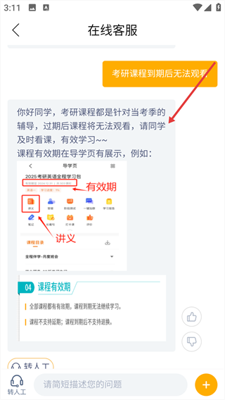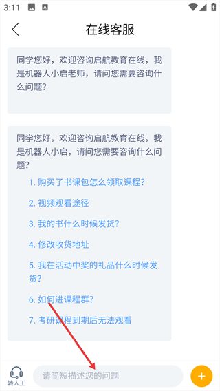3、進入在線客服界面,在底部輸入框描述問題進行咨詢。